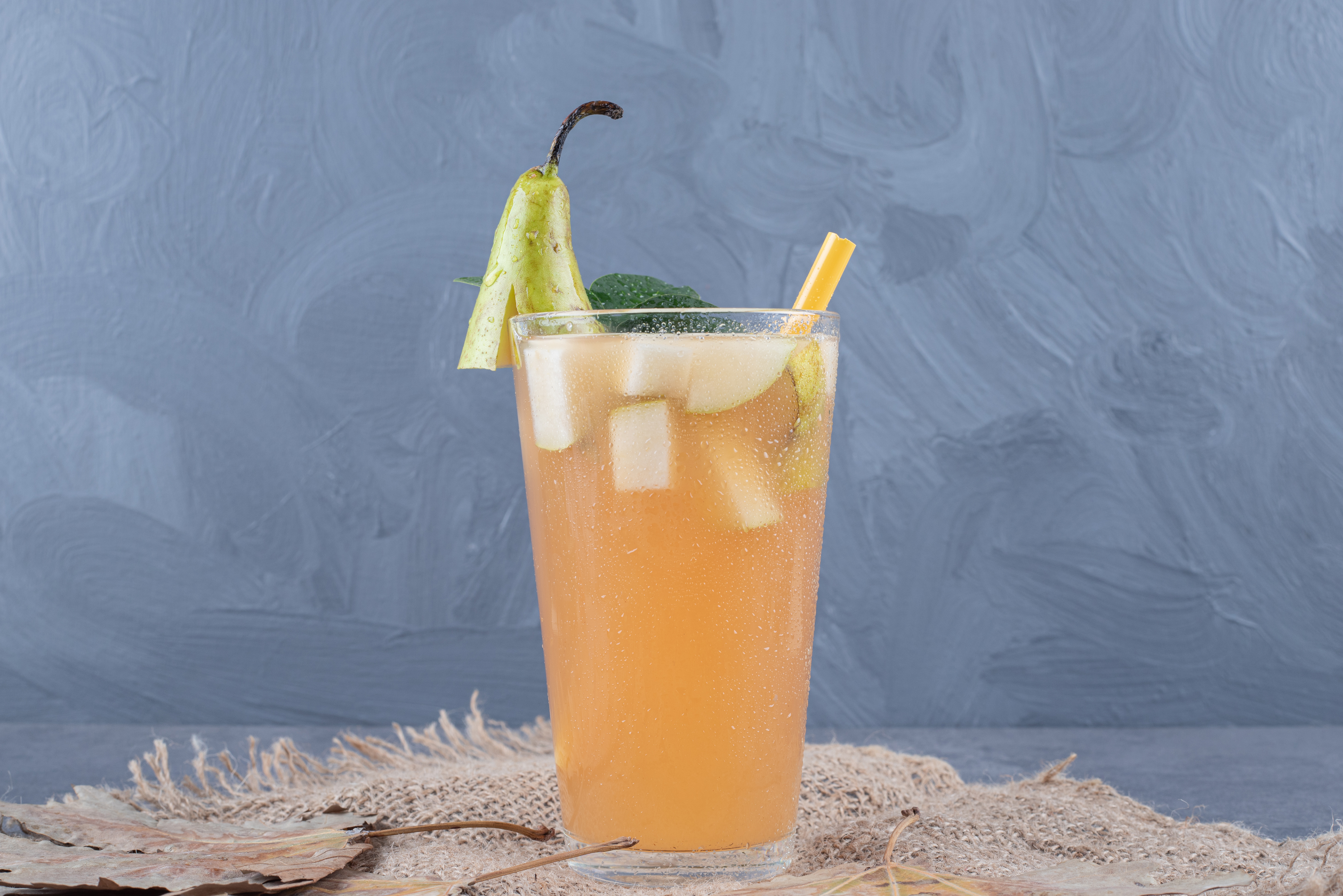 Fresh healthy fruit juice on grey background. High quality photo